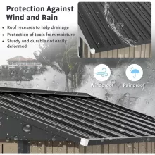 From the moment I laid eyes on this outdoor metal storage shed, I knew it was exactly what my backyard. The smart design of the sloped roof not only provides additional storage space but also prevents water accumulation - a feature that ensures longevity and maintains the pristine condition of the shed over time. The multipurpose utility is another aspect that impresses me. Whether it's garden tools or pet housing, this shed caters to various storage needs perfectly. It’s like having your mini warehouse at home! What gives me peace of mind is its enhanced feature – a lockable door that keeps belongings secure while deterring small animals from getting inside. Plus, made with galvanized steel, there are no worries about rusting or UV damage even in harsh weather conditions. Assembly was easier than anticipated too! It comes with detailed instructions for quick and hassle-free setup – an added bonus for someone like me who isn’t very handy. But what truly sets this tool house apart is its elegant design. Not just functional, it adds a stylish touch to my backyard area making it more appealing to look at every day. In conclusion, investing in this spacious and durable outdoor metal storage shed has been one of my best decisions so far! From easy assembly to efficient storage and enhanced protection features - everything about this product screams quality.