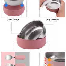 This feeding set comes with a stainless steel bowl, fork, and spoon, all paired with detachable silicone handles that are gentle for little hands. The food-grade silicone is latex free, nitrosamine free, phthalate free, PVC free, and BPA free, ensuring your baby eats safely with every meal. The detachable design makes cleaning simple and convenient, while the lightweight construction makes it perfect for everyday use.