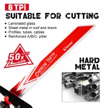 - 8 TPI tooth design for efficient cutting through thick and hardened metals