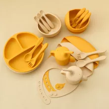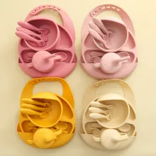 This complete feeding set includes a suction plate, bowl, spoon, fork, waterproof bib, and portable sippy cup, all made from soft yet durable silicone. It is ideal for babies starting solids, toddlers learning self-feeding, and young children building independence at the table. Whether it’s breakfast, lunch, dinner, or snack time, this set fits perfectly into your daily routine.