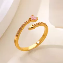 Elevate your look with this stunning Adjustable Pink Zircon Heart & Arrow Open Ring, designed to bring charm, elegance, and a touch of romance to every outfit. Crafted from durable stainless steel and finished with luxurious 18k gold plating, this trendy statement ring blends modern style with timeless feminine allure. Its delicate 0.08-inch surface width gives it a sleek, graceful appearance, while the open arrow-shaped design adds a playful and symbolic touch.