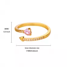 This ring stands out because it combines durability with stunning beauty. The stainless steel base resists tarnish, while the pink zircon heart adds vivid sparkle that catches attention from every angle. Its adjustable arrow-shaped open design not only makes it easy to wear but also adds a distinctive, modern twist that sets it apart from ordinary rings.