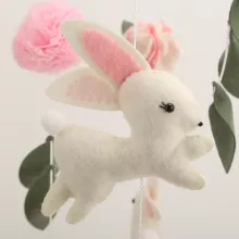 Make your baby’s nursery extra special with this enchanting bunny mobile. Not only does it serve as a charming decoration, but it also supports early development and provides calming moments throughout the day. Add this beautiful mobile to your nursery setup and give your little girl a gift of joy, comfort, and endless fascination. Bring home this adorable bunny mobile and watch your baby’s eyes light up with curiosity and delight.