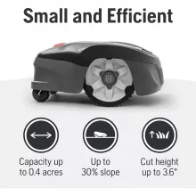 This compact robotic mower is built to handle various terrains and weather conditions. It navigates narrow passages, objects, and slopes up to 17 degrees effortlessly. With a cutting width of 9 inches, it efficiently covers up to 720 square feet per hour, making it ideal for lawns up to 0.4 acres.