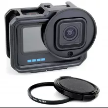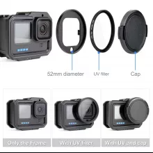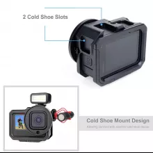 This aluminum frame mount is not only about protection but also offers a wide range of benefits for serious GoPro users. It’s built to withstand rough environments, providing a solid and reliable shield for your camera. The addition of the UV lens filter helps minimize the impact of harsh sunlight and reduces the risk of blurry or distorted footage, while the lens cap ensures your lens stays pristine. With its cold shoe mount, you can easily enhance your setup by attaching external devices like microphones or lighting to improve audio and video quality.