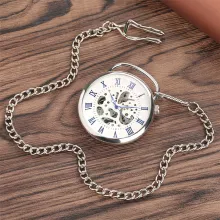 What makes this piece truly unique is its ability to connect the past with the present. The transparent skeleton design lets you witness the timeless artistry of gears and springs in motion. Its silver finish enhances the antique charm, while the bold Roman numerals ensure classic readability. Owning this pocket watch isn’t just about keeping time—it’s about keeping tradition alive.