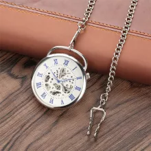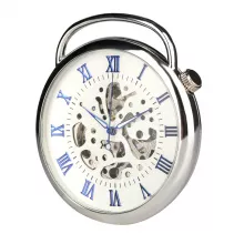 Step back in time with this stunning open-face pocket watch, crafted to blend elegance with old-world sophistication. Featuring a transparent skeleton design, this antique-inspired timepiece allows you to admire the intricate inner workings with every glance. The striking blue Roman numeral display adds a touch of boldness to its silver casing, making it both a functional accessory and a stylish statement piece. Perfect for collectors, history enthusiasts, or anyone who loves the art of classic timekeeping, this watch is a conversation starter wherever you go.