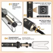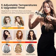 This curling iron is packed with smart technology that makes styling simple and worry-free. The anti-tangle design ensures your hair glides smoothly without snagging. With five adjustable temperature settings, you can choose the perfect heat for your hair type—whether it’s fine, thick, or somewhere in between. The ion function and water ion care lock in moisture and reduce frizz, leaving your curls looking silky and polished. Plus, the automatic shut-off feature gives you peace of mind every time you style.