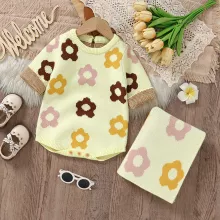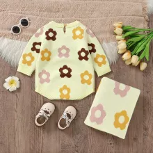 This set is best used during autumn, spring, and winter when your baby needs a breathable yet cozy layer. Featuring full-length sleeves, an easy pullover design, and a cute floral pattern, it’s the perfect blend of style and function. Whether you’re dressing your little one for a family outing, photo session, or everyday snuggles at home, this outfit delivers comfort without compromising charm. What makes it special is the thoughtful combination of a beautifully knit jumpsuit and a soft quilted blanket—an ideal pairing for parents who value practicality and style.