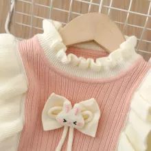 - Design: Puff long sleeves with elastic cuffs, ruffled neckline, and a cute bow with embroidered bunny accents