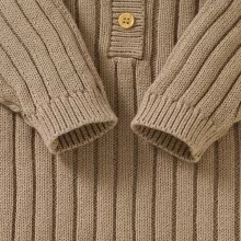 Crafted with love and care, this romper is ideal for newborns and babies aged 0-18 months. The gentle cotton knit fabric provides just the right amount of stretch and softness to keep your baby feeling snug and free to move. The solid color adds a touch of simplicity and charm, making it easy to pair with any accessories or outerwear for a complete look. Whether for everyday wear or special moments, this playsuit guarantees your baby will look adorable and feel comfy!