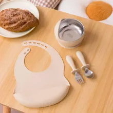 What makes this feeding set special is its thoughtful design. Unlike ordinary tableware, the detachable suction bowl keeps food stable while your baby explores eating independently. The waterproof silicone bib saves you time on laundry, while the ergonomic utensils help develop fine motor skills. With its modern look and practical features, this set isn’t just mealtime gear—it’s a parent’s best friend during the feeding journey.