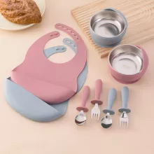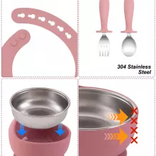 - Complete set: Bowl, fork, spoon, and waterproof bib included.