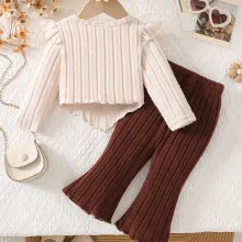 Unlike ordinary baby clothes, this two-piece set balances functionality with design. The charming details and thoughtful construction make it stand out as a must-have in your baby’s wardrobe. Easy to mix and match with other pieces, the brown bell bottoms pair beautifully with sweaters, jackets, or even onesies. The floral bow top, on the other hand, can be dressed up or down, making it versatile for different occasions.