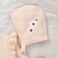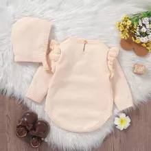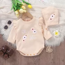 Dress your baby girl in cozy charm with this beautifully designed knit bodysuit set made just for newborns and infants. Thoughtfully created for comfort and cuteness, this long-sleeve romper with a matching hat brings together gentle warmth, delicate details, and everyday practicality. The soft knit feel is perfect against sensitive baby skin, while the sweet ruffle and floral embroidery add an elegant touch you will love seeing again and again.