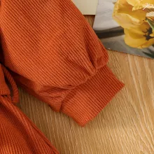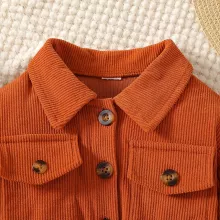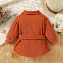 Bring timeless charm to your little one’s wardrobe with this Baby Girl Retro Corduroy Jacket. Designed in a warm orange hue, it captures the essence of autumn fashion while adding a playful touch to daily street outfits. Its collared design and bubble sleeves create a stylish retro vibe that makes your baby girl stand out in comfort and cuteness.