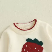 This sweater combines comfort with playful design, making it a wardrobe favorite for little girls. With its breathable knit fabric, it offers the perfect balance of warmth and softness. Available in sizes for ages 6 months up to 3 years, the fit is designed to be true to size, ensuring a snug yet comfortable wear. The strawberry embroidery adds a pop of color and cuteness, making it stand out from ordinary knitwear.