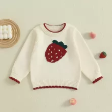 What makes this sweater truly unique is its delightful strawberry embroidery. Each detail is carefully stitched, creating a cheerful and stylish design that makes your little girl look even more adorable. The round neck and pullover style make dressing easy and fuss-free, while the high-quality knit ensures durability and long-lasting wear.