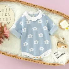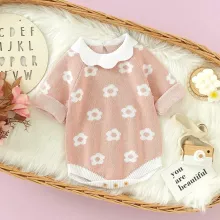 Dress your little one in comfort and charm with this adorable knit floral bodysuit. Designed for newborns to 18-month-olds, this long-sleeve jumpsuit blends softness, warmth, and irresistible style. Made from high-quality cotton and crafted with a gentle knit finish, it keeps your baby snug while allowing full freedom of movement. The sweet floral pattern and turn-down collar add a touch of elegance, making it perfect for both daily lounging and special outings.