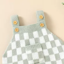 This adorable plaid knit baby romper is designed to make everyday dressing easy, comfortable, and irresistibly cute. With its soft texture and classic pattern, it brings a timeless look to your baby’s wardrobe while keeping them cozy and free to move. The sleeveless design and breathable knit make it perfect for warm days, yet easy to layer during cooler seasons.