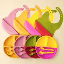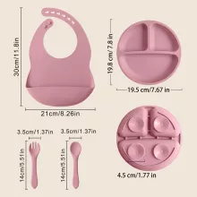 Baby Silicone Feeding Set with Suction Plate, Bib, Spoon & Fork