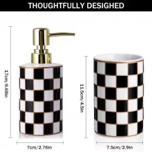 Bring fresh charm and practical elegance to your bathroom with this black and white checkered ceramic lotion bottle and toothbrush holder set. Designed to stand out without overwhelming your space, it blends clean modern style with everyday usefulness. Whether you’re updating your vanity or creating a coordinated look in a guest bathroom, this set adds an instant touch of refinement.