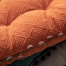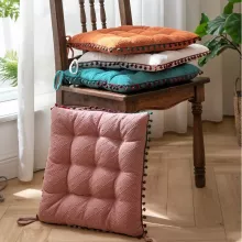 This cushion is made with high-quality polyester fabric that feels smooth and comfortable against the skin. Measuring approximately 16 inches (40 cm) across, it’s generously filled to provide just the right amount of softness and support. The secure ties keep the cushion in place, while its nine-point stitching helps maintain shape and durability even with daily use.