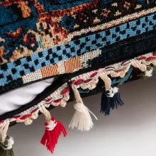 With its bold colors, detailed pattern, and playful tassels, this pillow cover is more than just a decorative piece – it’s a statement. Add it to your space today and enjoy the perfect mix of comfort and bohemian elegance. Turn your sofa, bed, or chair into a cozy, stylish retreat that’s full of personality.