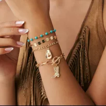 Bring rustic elegance and free-spirited charm to your look with this 4-piece boho bracelet set. Featuring unique cowboy hat and boots pendants, these bracelets are designed for women who love to express their individuality with style. The shimmering sequin chain bangles add a touch of sparkle, making them just as perfect for everyday wear as they are for dressing up on special occasions.