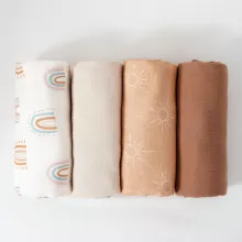 Wrap your little one in gentle, all-season comfort with this 4-piece set of 100 percent crepe cotton muslin swaddle blankets. Designed to be incredibly soft, lightweight, and breathable, these essentials keep your baby cozy without overheating. Each blanket measures approximately 40 x 40 in, offering generous coverage for swaddling, cuddling, nursing, or providing shade on stroller walks.