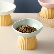 Ceramic Cat Bowl with High Footed Slanted Design | Anti-Tip Cute Feeder