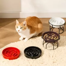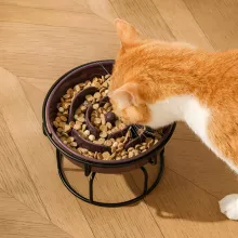 Unlike standard feeders, this ceramic slow-feed bowl gently guides your pet to eat at a controlled pace, supporting better digestion and reducing the risk of bloating or discomfort. The elevated metal rack adds a touch of modern style and keeps the feeding area tidy. Designed for both cats and small dogs, it’s an excellent choice for pet owners who want a healthier and more enjoyable dining setup.