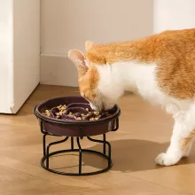 Make mealtime calmer and more enjoyable with this ceramic slow-feed pet bowl, thoughtfully designed to help your cat or small dog eat at a healthier pace. Crafted from durable, food-safe ceramic and paired with a sturdy iron rack, this rounded bowl turns everyday feeding into a cleaner, more comfortable experience. Its smooth, high-quality finish looks beautiful in any home, while its slow-feeding design supports better digestion and overall well-being.