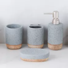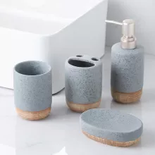 This elegant set isn’t just about looks — it’s designed to make your daily routine smoother and more enjoyable. The smooth ceramic surface feels premium to the touch and resists stains and odors. The wood grain base enhances grip and stability, preventing slips and spills. Each piece complements the other, ensuring your bathroom looks neat and coordinated at all times.