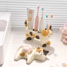 Unlike ordinary plastic holders, this ceramic stand is not only functional but also a statement piece that transforms your countertop into a charming scene. The handcrafted feel and whimsical design make it stand out, turning a simple routine into a small daily delight. Make your bathroom beautiful—and your mornings brighter—with this irresistible cat-themed toothbrush holder.