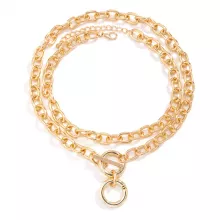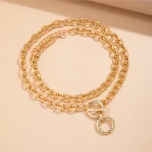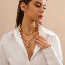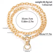 Made from a combination of aluminum chain, alloy, and CCB, each piece is both durable and surprisingly lightweight for its size. The exaggerated chunky links, industrial-inspired OT (toggle) buckle, and bold circle pendant give this choker necklace set a raw, unapologetic edge that works just as well for women as it does for men. With a sleek gold finish and carefully constructed silhouette, it’s perfect for layering or wearing solo.