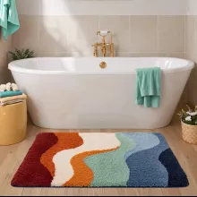 Transform your bathroom or any living space with this beautifully designed colorful floral bathroom mat. Crafted from soft, fluffy polyester fibers, this rug delivers a cozy step every time you walk on it. Its vibrant daisy-inspired design instantly brightens your décor, while the plush texture adds a warm, welcoming feel to any room. Whether stepping out of the shower or enhancing a doorway, this mat brings both charm and functionality to your home.