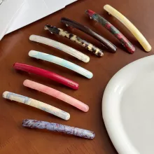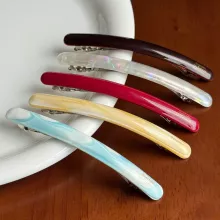 These versatile clips are designed to complement any outfit — from casual daytime wear to evening elegance. Their glossy acetate material reflects light beautifully, giving your hairstyle a polished and refined touch.