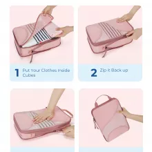 Turn chaotic packing into an effortless, organized experience. These compression packing cubes are designed to help you fit more into your suitcase while keeping everything neat, visible, and easy to access. By using a smart compression zipper system, your clothes are flattened and excess air is pushed out, saving up to 60% more space. No more sitting on your suitcase or leaving favorite outfits behind.
