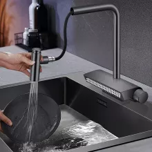 I recently revamped my kitchen, opting for a sleek, modern look, and I must say, the centerpiece of this transformation is none other than the stunning faucet I installed. The elegant black finish and unique waterfall design have turned mundane dishwashing into a visually pleasing experience. What's more, the pull-out sprayer feature has been a game-changer, making it incredibly easy to clean large pots and pans. The quality is top-notch, with a solid brass construction that promises durability. Installation was a breeze, and it has functioned flawlessly since day one. I've received numerous compliments on its sophisticated appearance and functionality. It's not just a faucet; it's a statement piece that has elevated the entire ambiance of my kitchen. Highly recommend for anyone looking to add a touch of luxury and practicality to their space