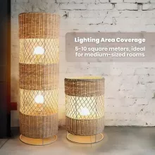 Our floor lamp is more than just a light source. It’s a silent art piece that stands testament to skilled weaving techniques. The lamp casts a soft, downward light, perfect for creating a relaxed setting. Its shadeless design and elegant rattan weaving add a touch of nature and simplicity to your space.