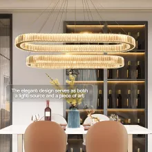 I recently installed this exquisite lighting fixture in my dining area, and it has completely transformed the space. The design is both elegant and modern, with sparkling crystals that drape beautifully, reflecting and refracting light to create a dazzling effect. The LED lights embedded within the fixture provide a consistent and powerful illumination that enhances the ambiance of the room, making every meal feel like a special occasion. What struck me most about this piece was the attention to detail in its construction. Each crystal is flawlessly cut and positioned to maximize the light's reflection, creating a warm and inviting atmosphere. The fixture's overall build quality is superb, with a robust frame that supports the delicate crystals securely. Moreover, the LED technology integrated into this piece offers not only stunning lighting but also energy efficiency. This means I can enjoy the luxurious feel of high-end lighting without worrying about excessive energy consumption. The light emitted is bright yet soft on the eyes, perfect for creating a relaxed environment in my dining space. The installation process was straightforward, and the adjustable suspension cables allowed me to set the perfect height for my ceiling. It's become a statement piece in my home, garnering compliments from every guest. Its contemporary design seamlessly blends with my home decor, providing a touch of sophistication that elevates the overall look of my interior. In conclusion, this lighting fixture is an exceptional piece that offers both aesthetic beauty and functional excellence. It's a testament to modern design, combining energy efficiency with luxurious style, and I couldn't be more pleased with how it enhances my home.