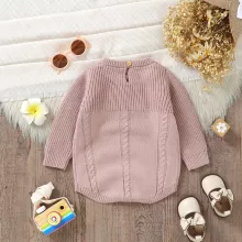 This romper features an easy O-neck design, full-length sleeves, and a snug yet flexible fit that stays true to size. With its breathable knit and cute style, it’s the ideal outfit for keeping your little one warm during playtime or naptime. Whether layered with tights, socks, or worn on its own, this adorable jumpsuit adds instant charm to your baby’s wardrobe.
