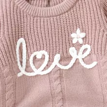 Wrap your baby girl in cozy charm with this beautifully knitted long-sleeve romper, designed to keep her warm, stylish, and comfortable during cooler autumn, spring, and winter days. Crafted from soft acrylic yarn, this romper feels gentle against delicate skin while providing just the right amount of stretch for easy movement. The sweet embroidered letter detailing adds a touch of personality, making it perfect for everyday wear, family outings, or capturing those unforgettable milestone photos.