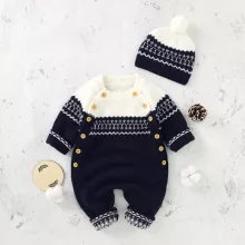 This long-sleeve knit romper is best used during the autumn season, when babies need an extra layer without feeling bulky. The breathable yet warm material helps regulate body temperature, keeping your baby snug during cooler mornings and evenings. The matching hat adds extra warmth and completes the look, making it a practical and stylish choice for daily wear, naps, strolls, or family visits.