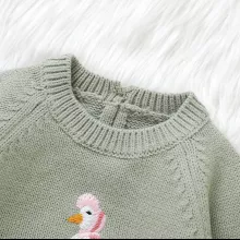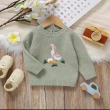 Wrap your baby in comfort and charm with this cozy knit baby sweater, designed for infants and toddlers up to 3T. Made from soft acrylic yarn, it feels gentle on delicate skin while keeping your little one warm through chilly days. The playful embroidered duck adds a touch of sweetness, making this pullover an instant favorite for everyday wear, family outings, and photo-worthy moments. Whether you’re dressing your child for a cool morning stroll or a cozy afternoon indoors, this sweater brings both style and comfort to their wardrobe.