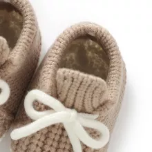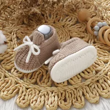 These infant shoes are thoughtfully crafted for babies who are just beginning to explore the world. The soft knit upper allows air to flow, helping feet stay comfortable in every season. A flexible yarn outsole supports natural foot movement, making them ideal as first walkers. The lace-up closure provides a gentle yet secure fit, while stitching construction ensures lasting shape and durability through daily wear.