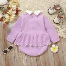Wrap your little one in warmth and cuteness with this cozy knit long-sleeve baby bodysuit. Designed for newborns to 18-month-olds, this soft, purple solid jumpsuit brings together comfort, fashion, and practicality in one irresistible piece. Its smooth knit texture feels gentle on your baby’s skin, while the charming tie-detail overalls design adds a stylish touch perfect for everyday wear, family outings, and adorable photo moments.