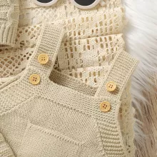 What are the product’s basic features? This set includes a soft long-sleeve cardigan (about 19.7–22 in depending on size), a sleeveless jumpsuit, and a matching hat—all crafted with durable acrylic knit. The fabric offers warmth without heaviness and stays gentle on sensitive newborn skin.