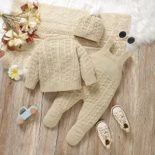Wrap your baby in gentle warmth and timeless style with this cozy 3-piece knitted newborn clothes set. Designed for infants from newborn to 9 months, this soft and snug outfit includes a matching cardigan sweater, sleeveless romper, and sweet little hat. Crafted with worsted acrylic knit, it feels incredibly soft on delicate skin while offering just the right amount of stretch for easy movement.